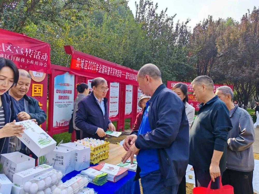 9月28日,栾城区科协联合河北银行栾城分行、圣雪社区、钊顺林下养殖协会在人防公园广场共同开展“栾城区2025年全国科普月系列活动——提升全民科学素质 科普法宣传进社区”活动。