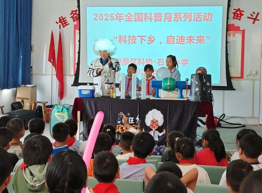 为加强基层科普服务、提升全民科学素质,在全国科普月期间,鹿泉区科协联合区教育局开展了“科技下乡,启迪未来”主题科学实验秀活动。本次活动特别邀请了石家庄市天文协会的专业团队走进石井小学,为孩子们带来一场别开生面、精彩纷呈的科学盛宴。