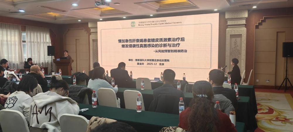 石家庄市医学会肝病专委会主任委员、市第五医院副院长康海燕主持开幕仪式并部署相关工作,为年会拉开序幕。本次会议议程紧凑丰富,开幕致辞结束后,首都医科大学附属北京佑安医院董金玲教授带来“慢加急性肝衰竭患者糖皮质激素治疗后继发侵袭性真菌感染的诊断与治疗”专题讲解,破解临床治疗关键难题;中日友好医院杨松教授聚焦“酒精肝诊疗新进展”,传递前沿诊疗理念;北京友谊医院贾继东教授针对“威尔森氏病的诊疗进展”展开深度剖析,助力参会者更新疾病认知。同时,河北医科大学第三医院周俊英教授、石家庄市第五医院贾彦生教授等专家也分别就“重症肝病合并感染的诊疗思路”“肝硬化特殊部位出血内镜治疗经验”等主题分享实战经验,内容兼具学术高度与临床实用性。此外,石家庄市第五医院“肝癌MDT团队”带来的病例讨论环节备受关注,通过分析真实病例、碰撞诊疗思维,为参会者提供“一站式”临床解决方案参考,有助于提升大家对复杂病例的诊疗能力。