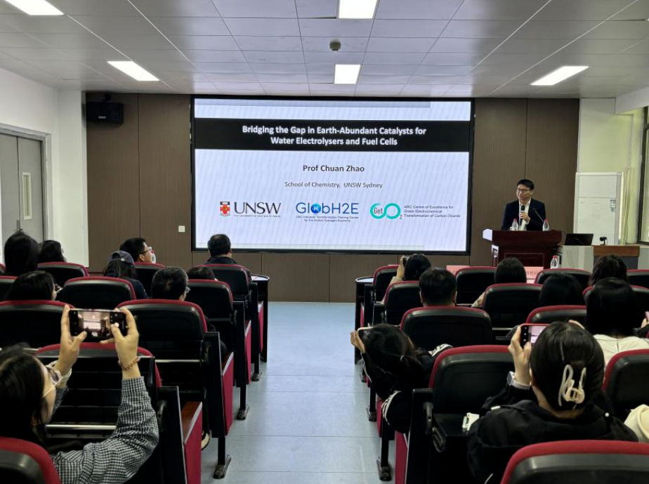 随后,赵川院士以《非贵金属催化剂在燃料电池与电解水领域的研究》为题作主旨报告。他结合“双碳”目标背景,阐述了二氧化碳减排与清洁能源开发的重要性,分析了电解槽行业技术现状及从实验室到工业化之间的差距,系统讲解了电解水析氢、析氧反应机理与催化剂研究方法,聚焦电极传质、气泡滞留等技术瓶颈,分享了3D打印电极等创新解决方案,深入探讨了非贵金属催化剂规模化制备的挑战,以及结构设计、孔径调控、表面改性等关键技术,并展望了其在燃料电池领域的应用前景。