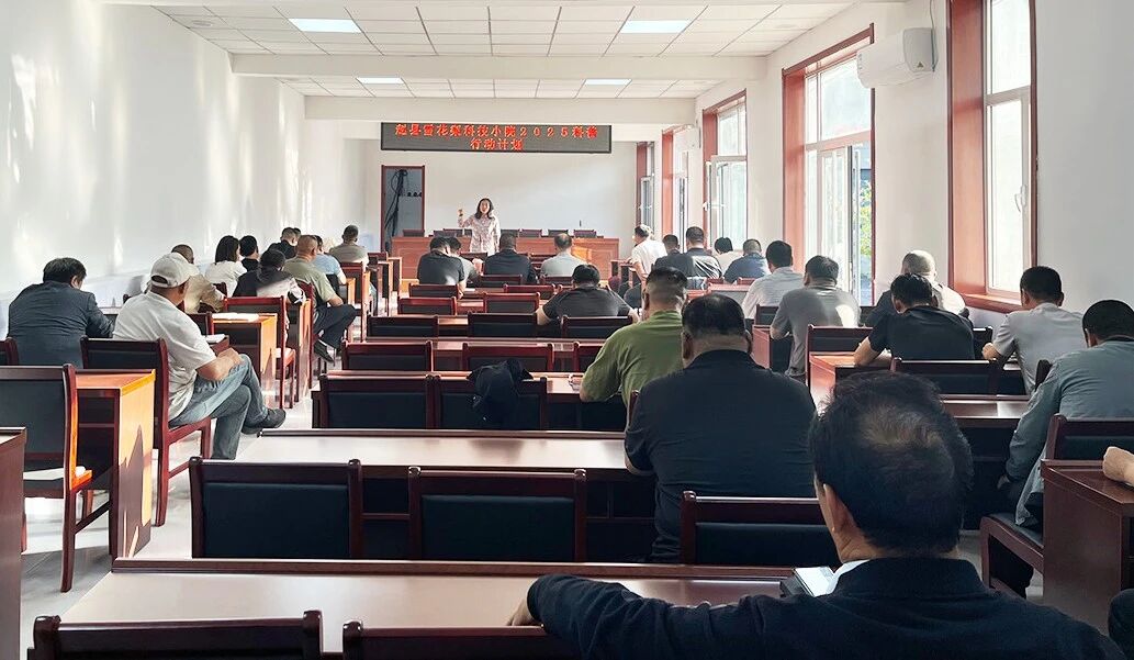 为深入贯彻乡村振兴战略,强化基层带头人的生态文明理念,推动赵县雪花梨产业绿色、可持续发展,近日,赵县雪花梨科技小院在范庄镇举办了以“乡村振兴 生态先行”为主题的赋能村书记科普活动。本次活动面向范庄镇36个行政村的党支部书记,通过知识普及与能力建设,将生态优先、绿色发展的种子深植基层治理一线。