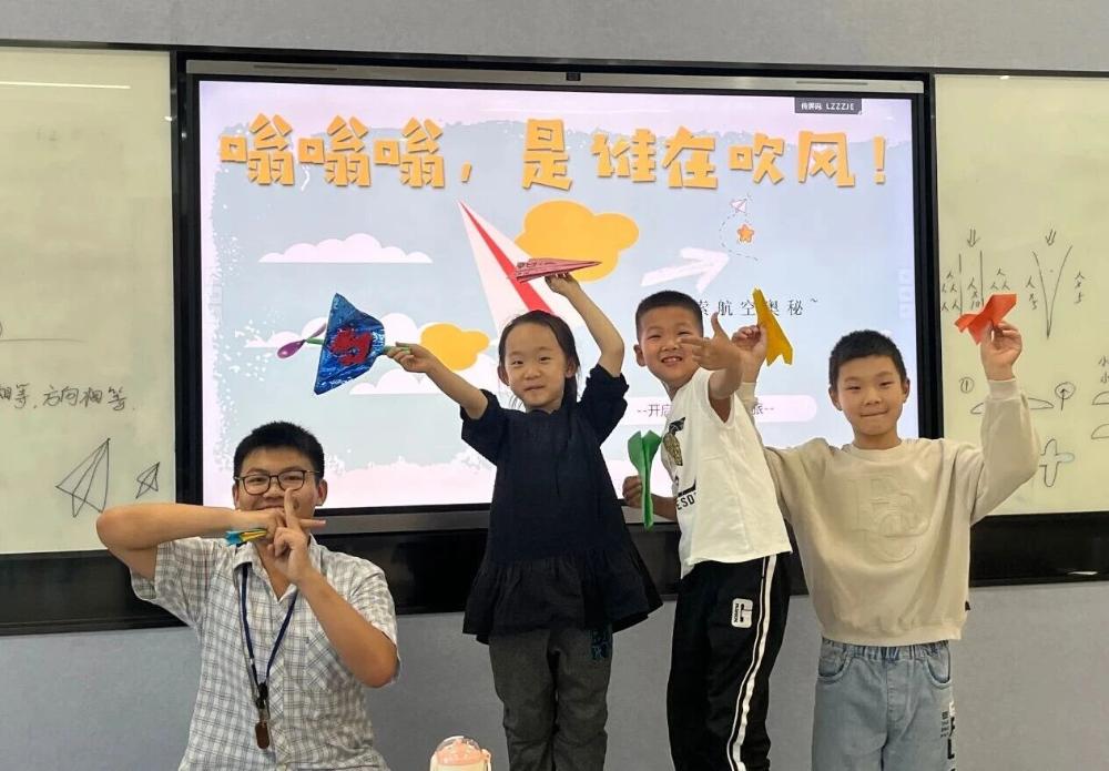 随后的“纸飞机挑战赛”将活动推向高潮。孩子们分组协作,化身“航空工程师”,精心设计纸飞机造型。在单人赛和团队赛中,他们不断调试改进,既加深了对气动原理的理解,又锻炼了团队协作能力。