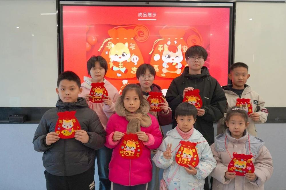 活动中,亲子间的默契与情感在协作中自然流露。家长细致示范,孩子用心模仿;你来穿针,我来引线,彼此配合无间。轻声的提示、完成的欣喜、偶尔相视而笑,这些片段让科技馆洋溢着家的温暖。经过共同努力,一个个寓意美好的手工福袋陆续完成,孩子们举起福袋作品,脸上写满自豪与喜悦。