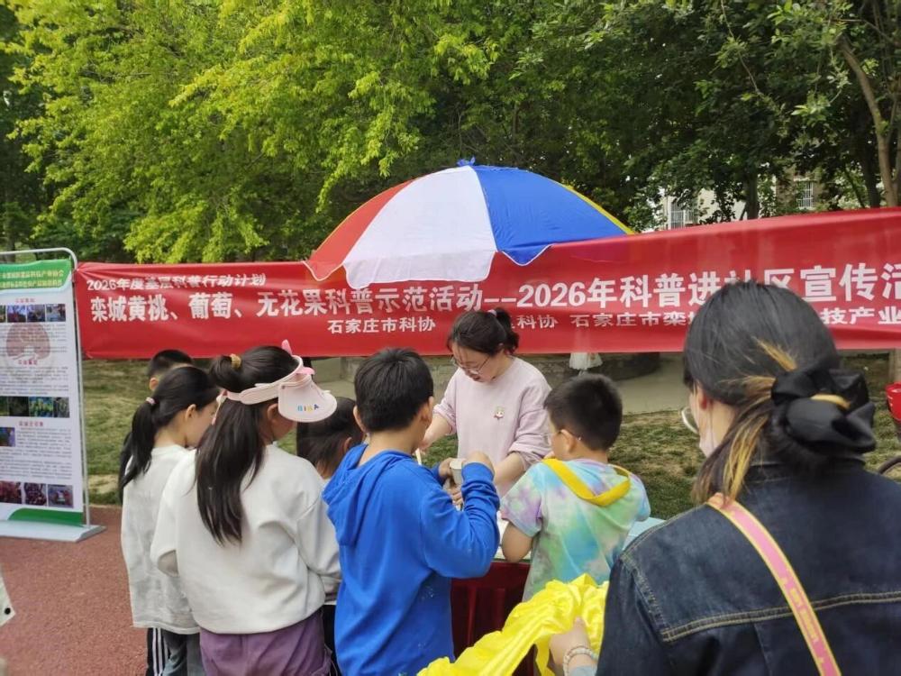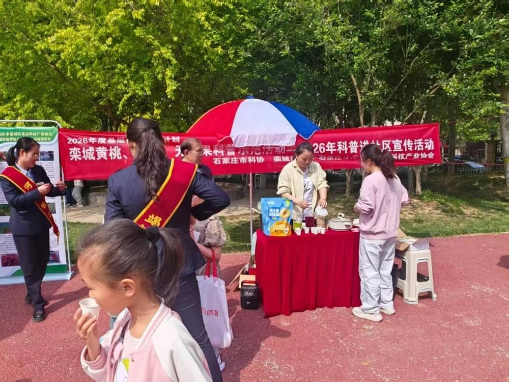 4月26日,栾城区科协组织2026年基层科普行动计划项目单位栾城彩色土豆产业协会、栾城果品科技产业协会在万源雅筑小区西侧人防公园广场,成功举办了一场“家乡特产科普进社区”活动。活动通过产品展示、知识讲解与品尝体验,让社区居民近距离了解家乡特产,助力乡村产业振兴。