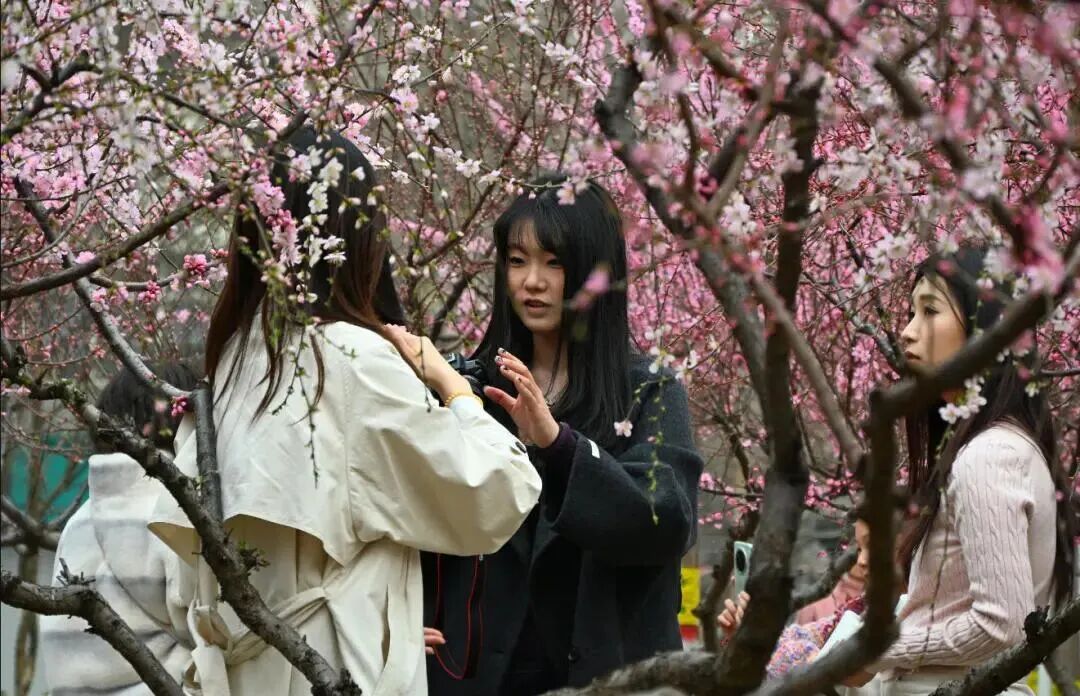 在东环公园西北角入口东侧,50余株美人梅集中绽放,成为园区内亮眼的春日景致。不少市民漫步花下,或驻足细赏,或举起相机拍摄,用镜头定格这份限定的春日美好。“春风一吹,满园都是温柔的粉红色,这些美人梅开得太漂亮了!”在东环公园内,市民张鑫一边用手机拍摄满树繁花,一边笑着说。