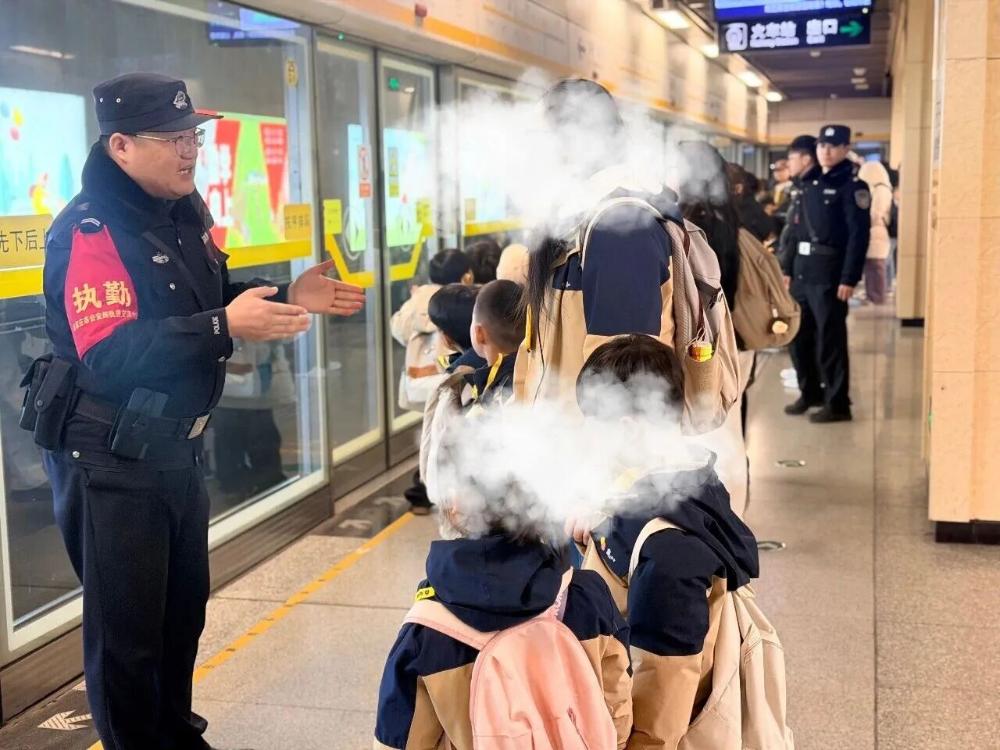 2.轨道公安暖心护航 36名研学娃平安换乘地铁:近日,市公安局轨道交通分局警员梁山、李润达和赵鑫龙,在石家庄站地铁站三号线站台巡逻时,发现从高铁免检通道区域,有老师带着很多小朋友在整理队伍准备换成地铁。梁山立刻上前询问情况,得知老师及36名小朋友们一行来自保定,到石家庄进行研学,目的地是河北省博物馆。梁山马上安排警员有序的让同学们通过进站闸机,随后引领至二号线站台乘车,因考虑到需要换乘一号线则把她们安排到车尾位置,同时建议老师采取包联机制,每名老师看管四至五名小同学,分开进车厢,又统一讲解了进车厢时的注意事项。待地铁进站后老师们带着同学们安全到达车厢,临上车前领队老师对警员的热心负责表达了感谢。随后梁山联系了北国商城地铁站警务室说明情况进行交接。(轨道公安)