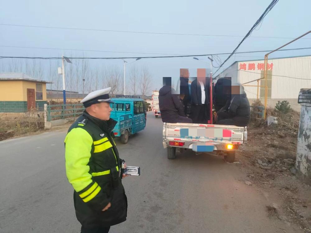 1.结伴返乡别侥幸!货车车厢载人,违法又危险:近日,石家庄公安执勤交警在日常巡逻时,发现了一起十分危险的交通违法行为。一辆轻型普通货车的后车厢内人头攒动,本应专门载货的空间,不仅满满当当塞满了人,还有部分人员直接站立在车厢里,所有乘车人均未采取任何安全防护措施。货车违法载人的行为,潜藏着极大的交通安全风险,一旦突发急刹、侧翻等意外,后果将不堪设想。执勤交警第一时间上前拦停车辆,并依法对该违法行为开展进一步核查处置。经查,该车核载2人,实载11人,后车厢内违法载人10人。车上都是同行返乡的村民,因觉得路途近、图方便,便让大家挤在车厢里。交警对驾驶人和乘客进行了安全教育,并根据相关规定对驾驶人进行了处罚,同时责令驾驶人对后车厢内人员进行安全转运。(石家庄公安交警)