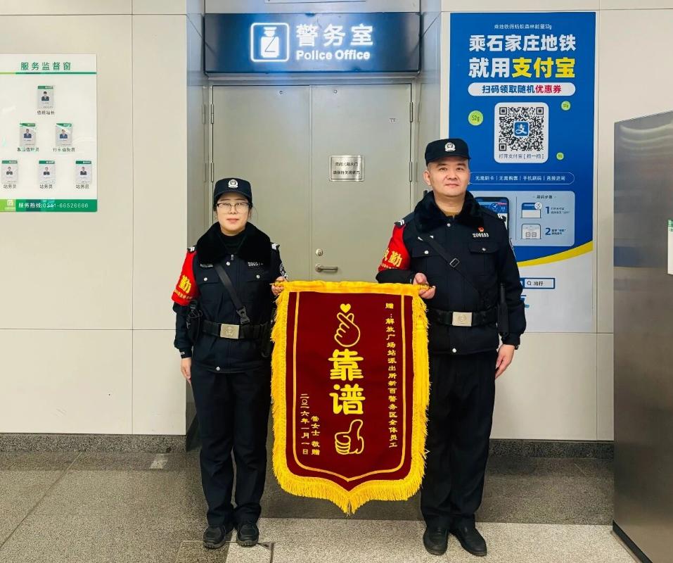 2. 一面“靠谱”锦旗,致谢轨道公安暖心寻回身份证: 1月4日14时25分,新百广场地铁站警员收到李同学家属邮寄到来的一面印有“靠谱”的锦旗,并表示自己的女儿近期要使用身份证,特别感谢轨道公安帮助找回并归还,为他们省去了重新办理的时间。原来,1月1日18时50分,市公安局轨道交通分局警员牛赵,在新百广场站执勤巡逻时捡到一张身份证,四周询问未果后,立即拿回警务室,民警康朝瑞通过证件信息,联系到了失主李同学家属。电话中,家属表示已经回到老家无法去拿。民警随即表示帮助办理邮寄服务,随后便预约了顺丰快递,快递小哥于3号上午顺利取件并邮寄。(石家庄轨道公安)