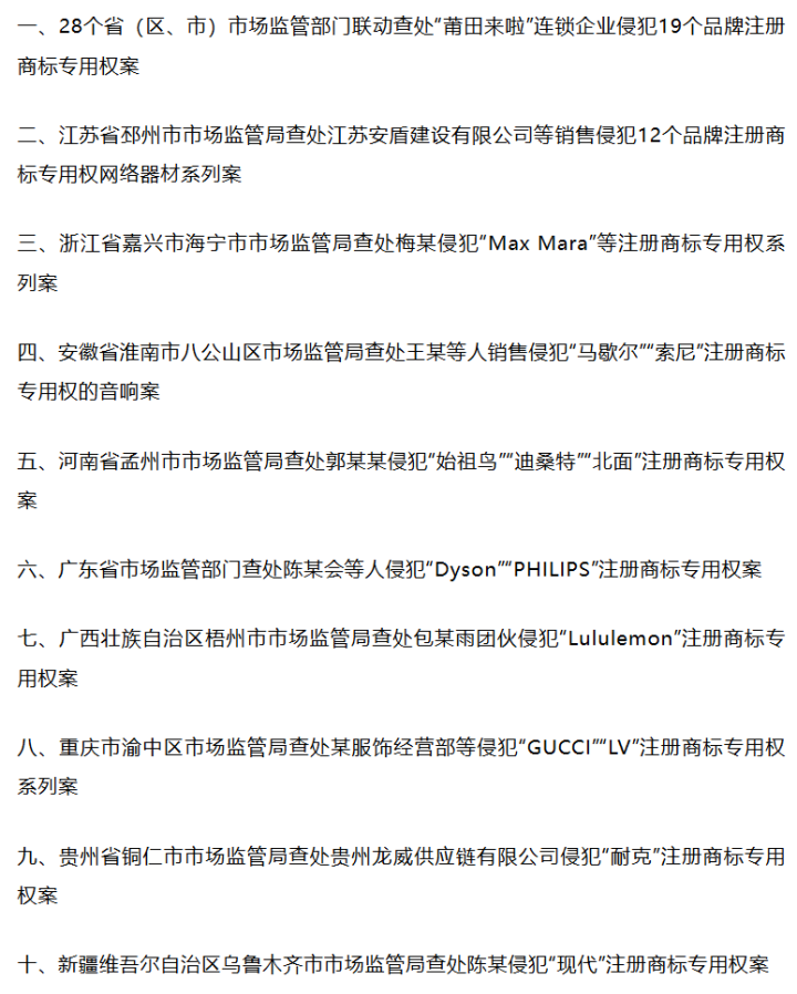 1. 剑指侵权!2025知识产权十大案件发布:2025年,全国市场监管部门立足服务经济社会高质量发展,聚焦与群众生活密切相关的重点商品、重点领域,严厉打击商标、专利、地理标志侵权假冒违法行为,查办了一批大案要案。近日,市场监管总局发布十起典型案件。(市说新语)